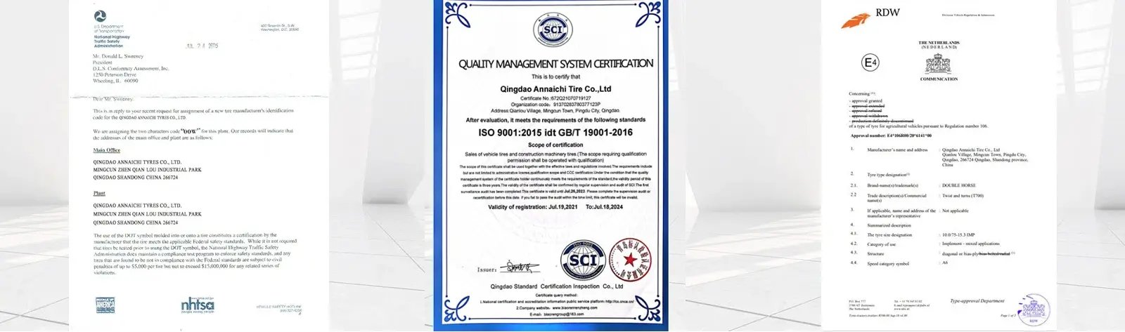 我公司已通过ISO9001:2008、CCC、美国DOT、欧洲ECE等专业认证。我们还建立了完善的检测体系,规范的运作,确保产品的高品质。